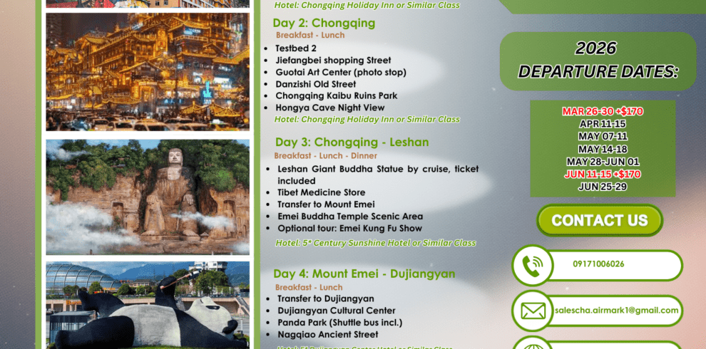 Chongqing Chengdu – Leshan Buddha – Panda Base (China)