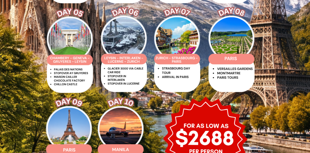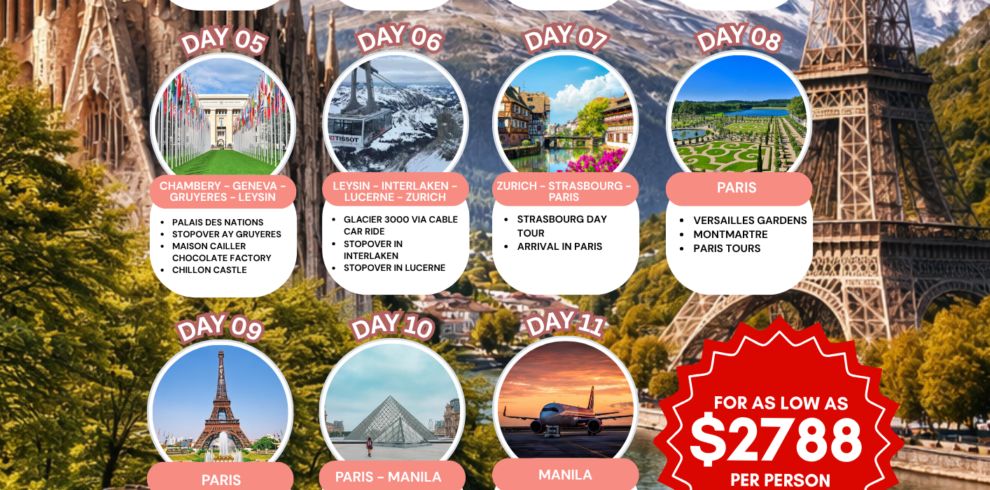 Spain-Swiss-France + 1night in Paris