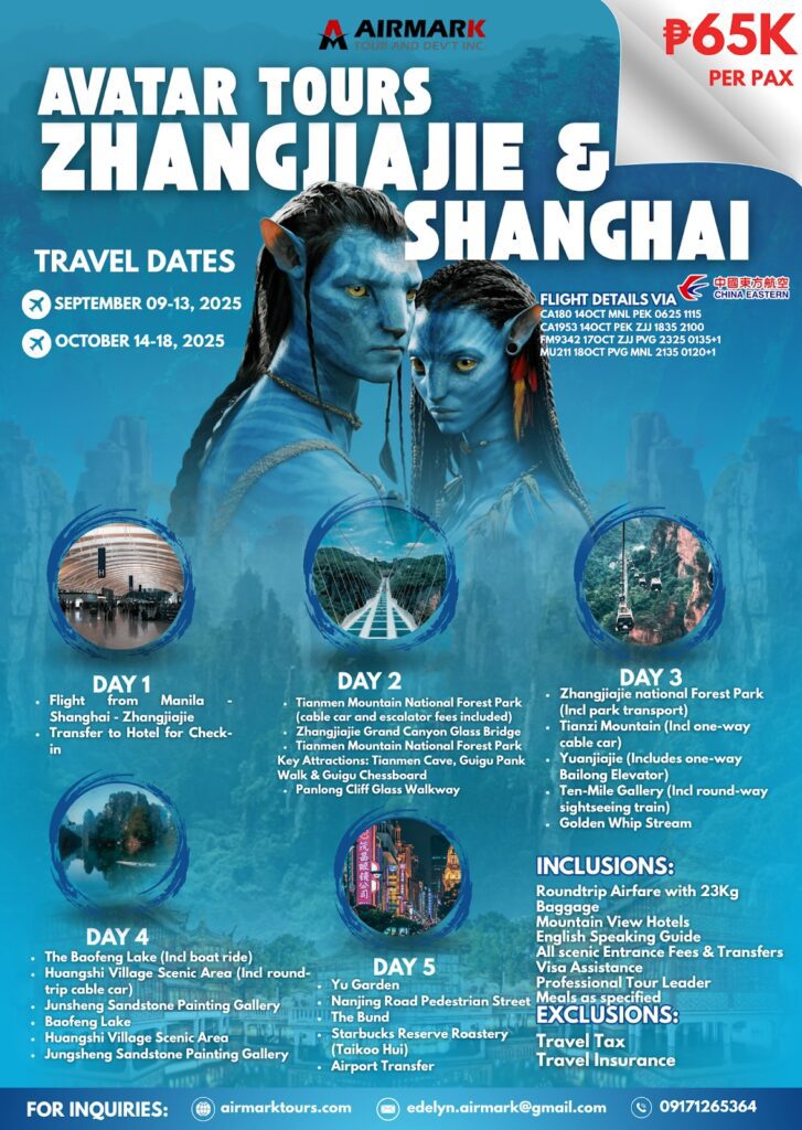 - Flight from Manila to Shanghai to Zhangjiajie