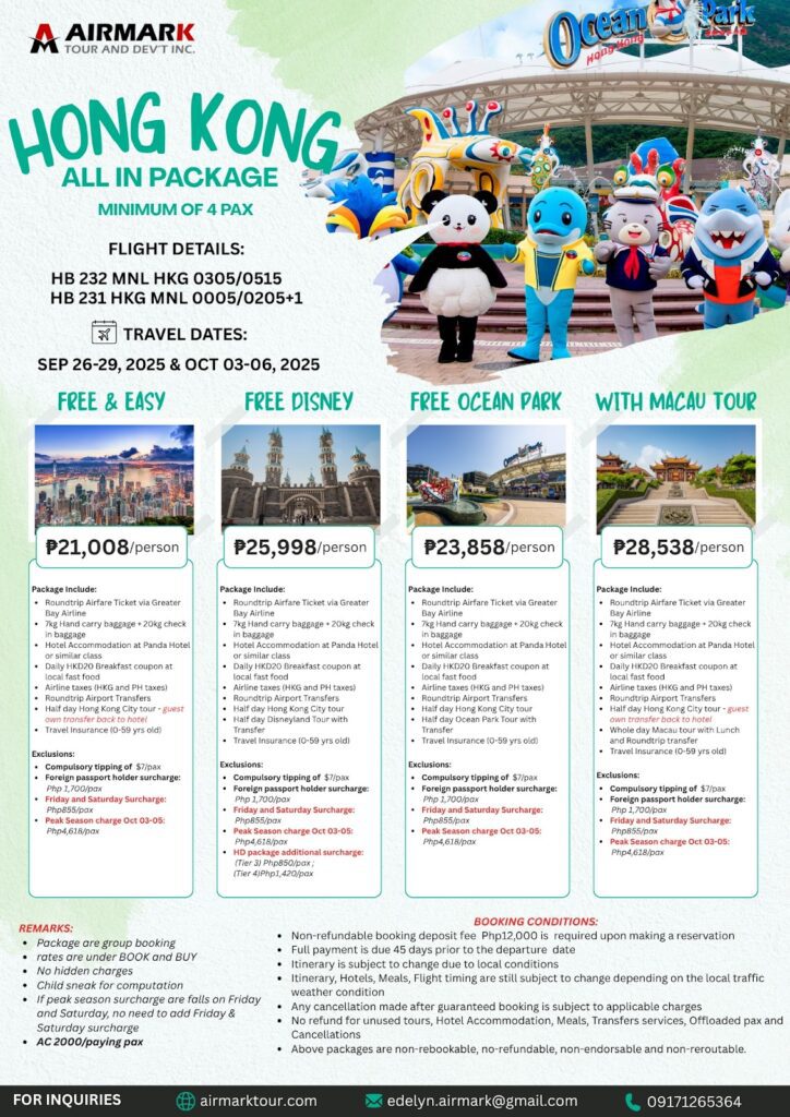 - Visit the Hong Kong Convention and Exhibition Center, Golden Bauhinia Square, Repulse Bay, Clock Tower, Victoria Peak, and Avenue of Stars.
